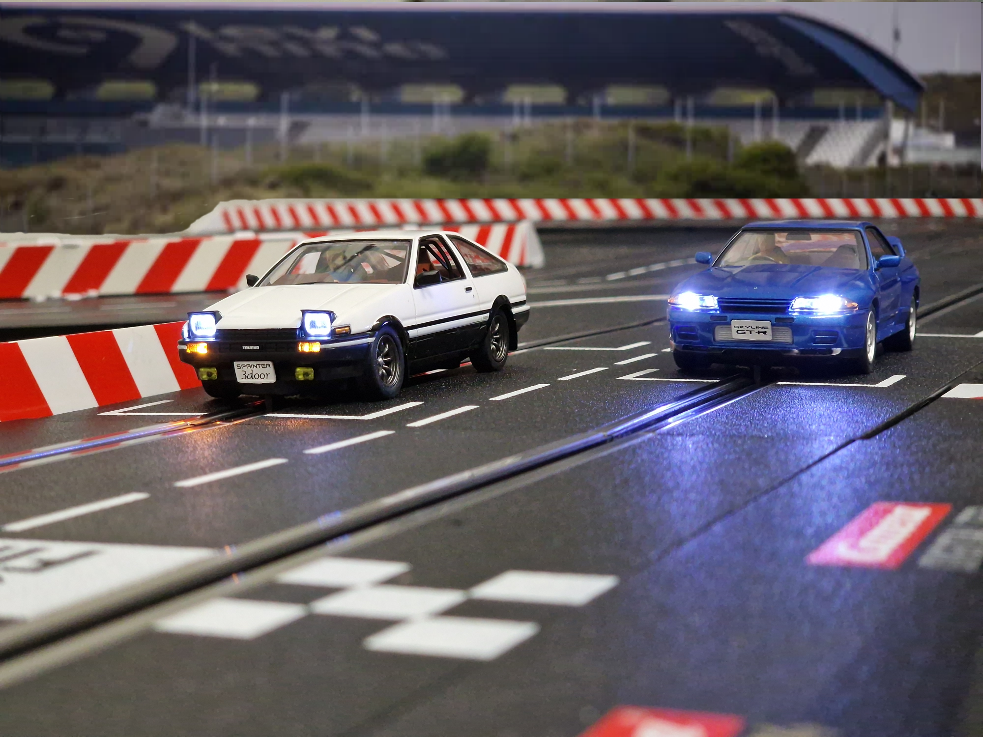 Twee JDM auto's wachtend tot de lichten uit gaan...