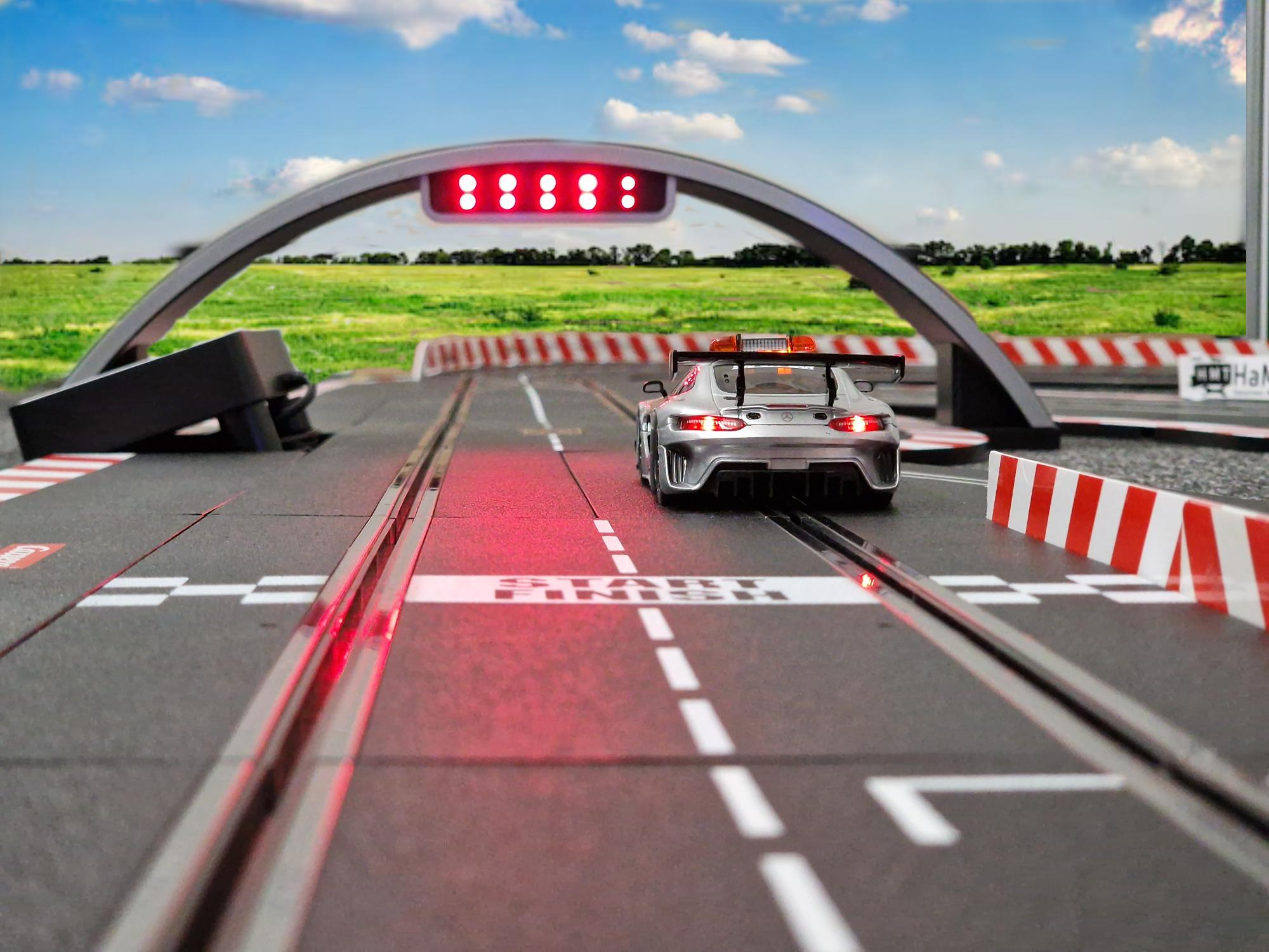 Het begin op Start/Finish. Vanaf hier vertrekken de auto's het lange rechte stuk op richting de eerste bocht.