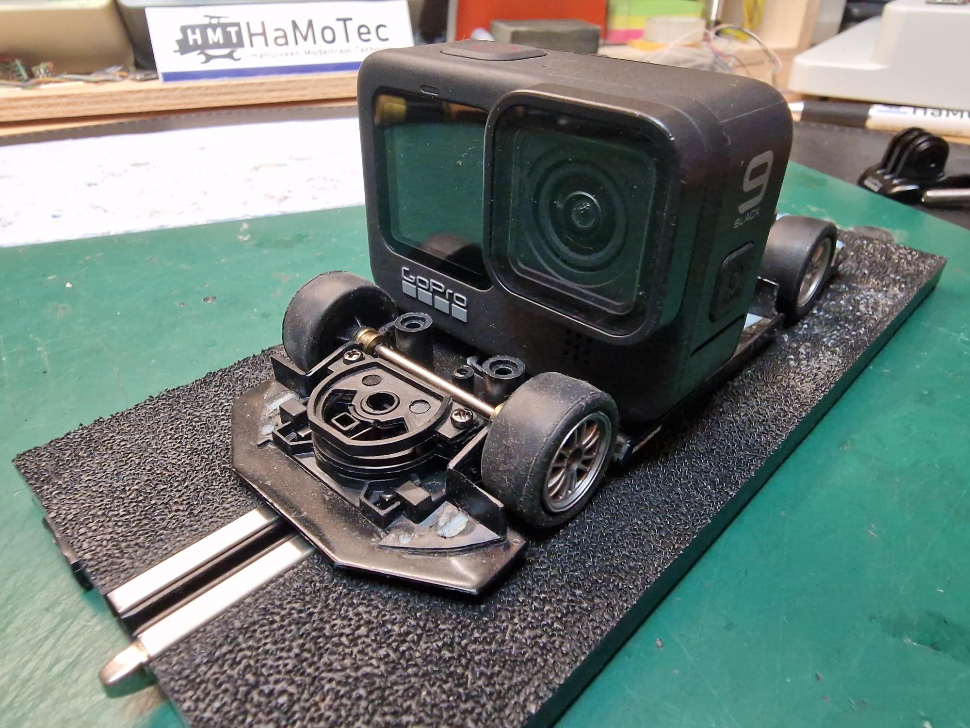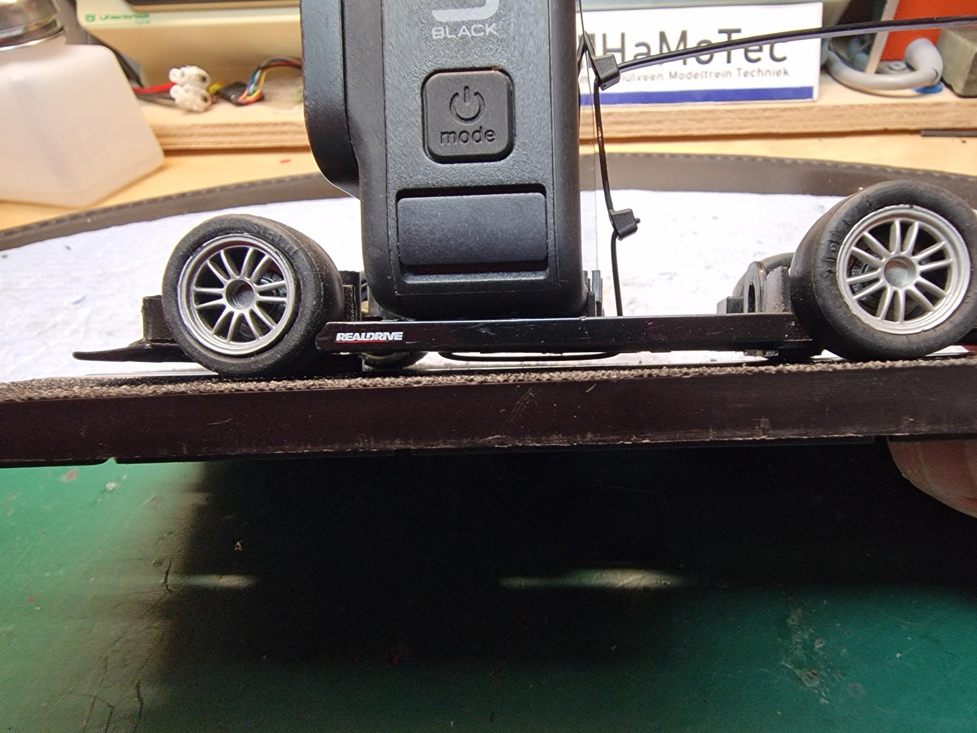 De camera is eenvoudig vastgezet met tie-wraps, met nog genoeg bodemvrijheid ten opzichte van de baan.