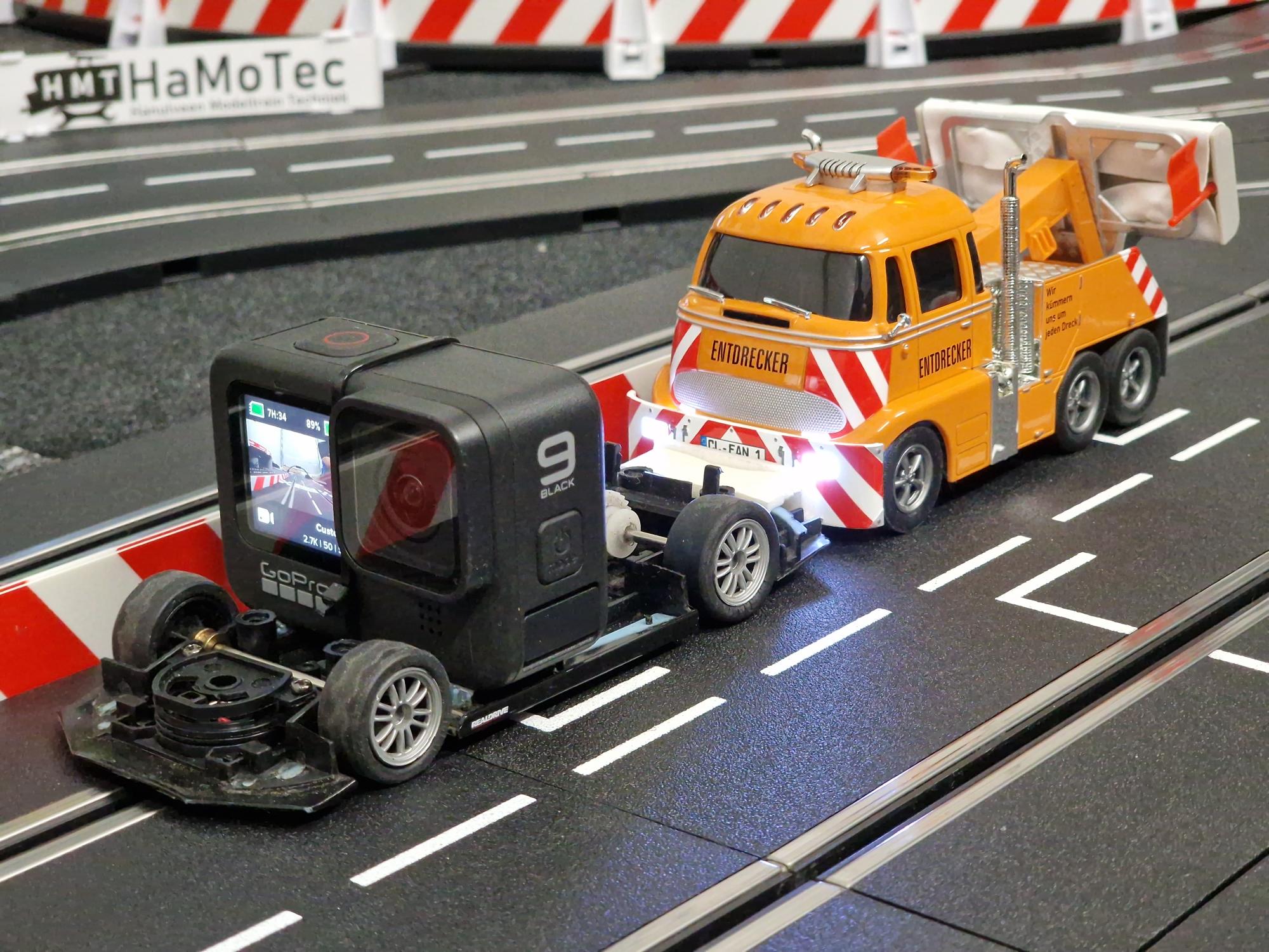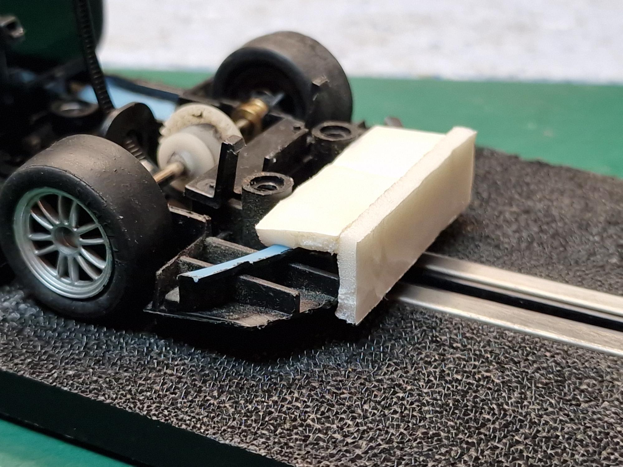 Tot slot heeft hij een foam achterbumper gekregen. Deze voorkomt dat het duwende voertuig op het chassis kruipt en ont-slot.
